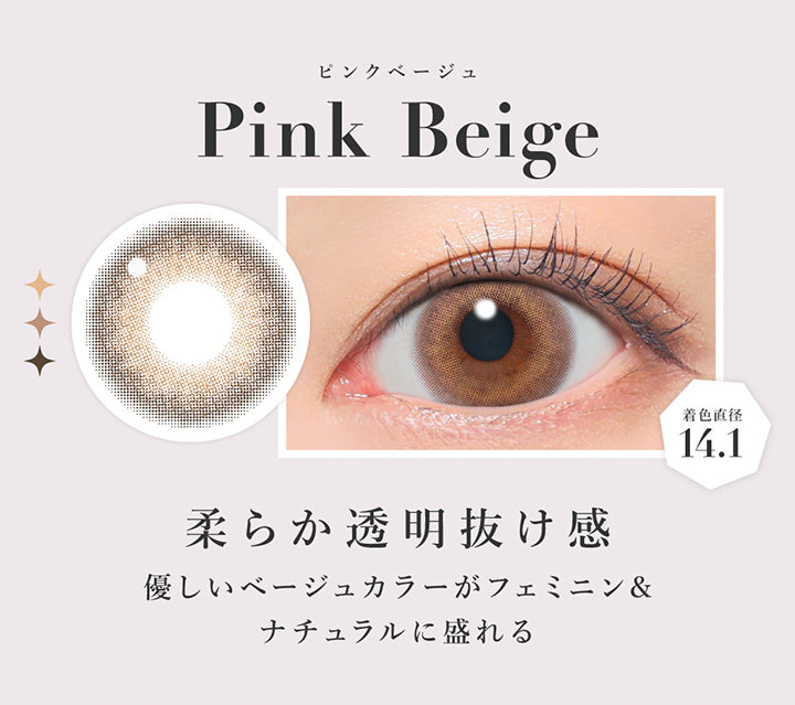フチがのドットが細かくふんわりしていて、ぽわっとかわいいピンクベージュの瞳の完成。
